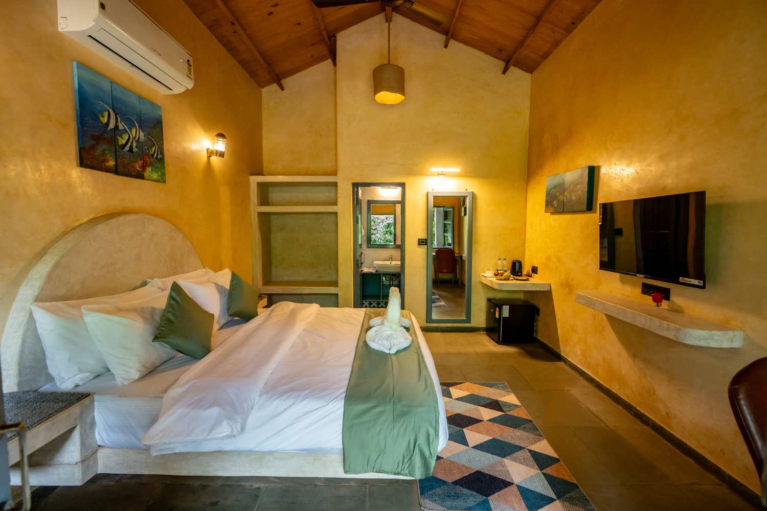 The Jr Suite Rooms provide spacious elegance with luxurious interiors and contemporary furnishings. Guests can enjoy a comfortable lounge area, stylish décor, and premium amenities, ensuring a perfect balance of relaxation and sophistication. Ideal for couples or small families, these suites promise a serene coastal experience, complemented by attentive service and the tranquil ambiance of Mandrem.
